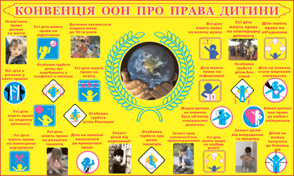 Усі люди на Землі мають рівні права та свободи. Ці права закріплені Загальною Декларацією прав людини, що прийнята Генеральною Асамблеєю ООН 10 грудня 1948р.Ваша дитина, як і будь-яка інша людина, має рівні людські права. Права дитини закріплені Конвенцією про права дитини, проголошеною Генеральною Асамблеєю ООН 20.02.1989 р.Права кожної людини закінчуються там, де починаються права іншої, і кожна людина повинна поважати права іншої людини.